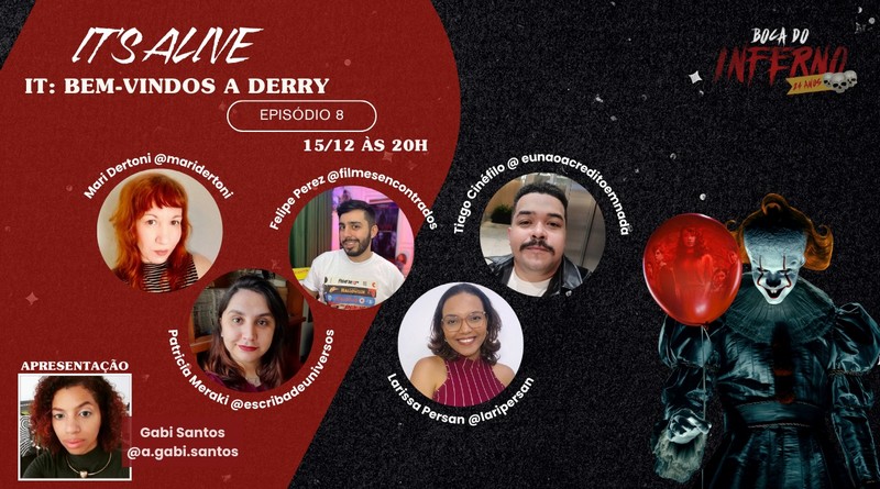 Depois de curtir os momentos finais da temporada, não se esqueça do nosso ponto de encontro amanhã, às 20h, no Canal do Boca do Inferno no Youtube. Gabi Santos e vários convidados irão promover uma dissecação do episódio e da série e ainda projetar os próximos acontecimentos. Confira abaixo os participantes da última It´s Alive de It: Bem-Vindos a Derry do ano e acione o sininho.