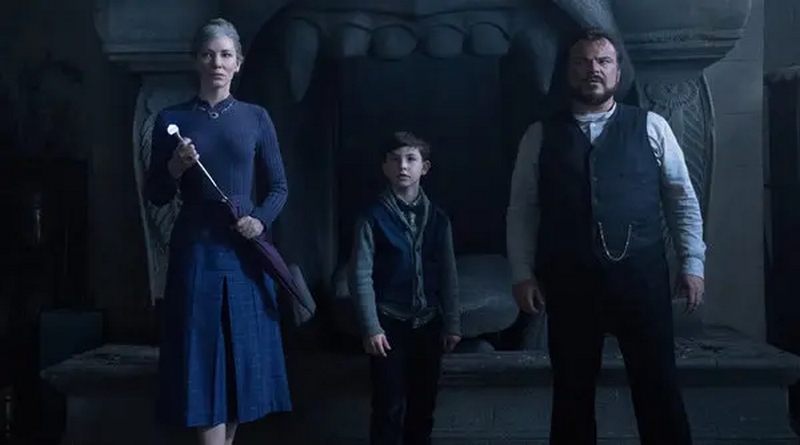 Baseado no romance clássico de John Bellairs de 1973, o roteiro de Eric Kripke (da série Sobrenatural) segue, sem maiores delongas, o jovem garoto Lewis (Vaccaro), que após perder os pais recentemente num acidente de carro, viaja sozinho para New Zebedee, onde vai morar num casarão sob tutela do tio Jonathan Barnavelt (Black) e companhia de Florence Zimmeman (Blanchett), que nos é apresentada como vizinha e melhor amiga de Barnavelt. A casa, de decoração excêntrica e repleta de relógios nas paredes (direção de arte do sempre competente e detalhista Jon Hutman) ainda tem fama de assombrada na vizinhança, o que não ajuda o fato de Lewis ser um garoto tímido e peculiar que não se encontra na nova escola, sofrendo com a recorrente exclusão. Na nova casa Lewis pode comer biscoitos à vontade, não há horários para nada, ele pode dormir a hora em que quiser, com a ressalva de um compartimento secreto que nunca deverá ser aberto, o que é óbvio, acontece oportunamente na história. Além disso, não é escondido do público logo no início da projeção que a casa – de fato – é, no mínimo, esquisita, com seus pianos que tocam sozinhos e pinturas que se movem.