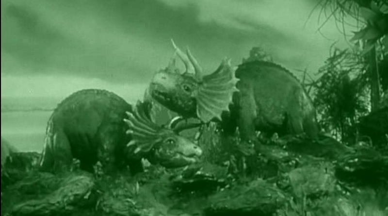 Os destaques obviamente são os animais pré-históricos que somente entraram em cena no terço final, com divertidos efeitos práticos em “stop motion”, que certamente deviam encantar os espectadores daquele período sem o auxílio da computação gráfica, com direito a um duelo mortal entre dois triceratops, um ataque de brontossauro e uma aparição de um pterodáctilo.