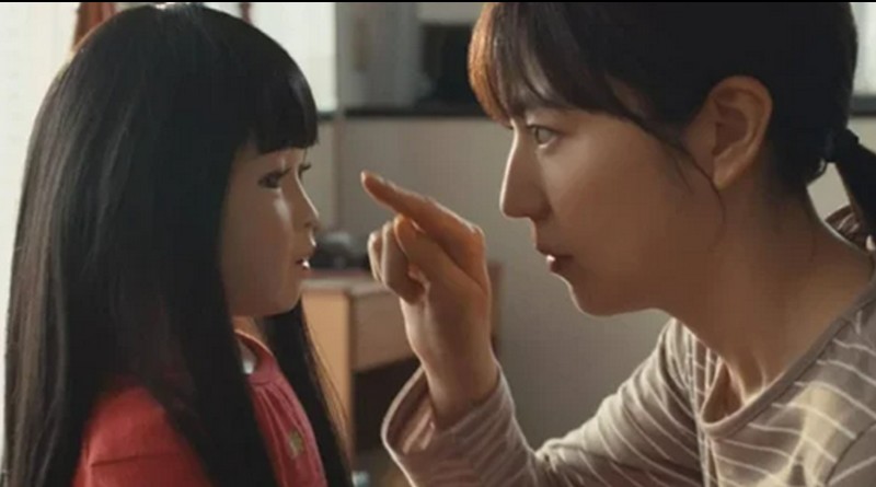 Um jovem casal iniciando uma família, lidando com uma tragédia ao mesmo tempo em que é perturbado por uma boneca amaldiçoada. Ora, já não vimos isso antes com a menina dos olhos de Ed e Lorraine Warren? É nítido que o diretor Shinobu Yaguchi teve suas inspirações, mas aqui tudo é muito mais bem feito e crível. Durante boa parte do primeiro e segundo atos, nos perguntamos se a boneca é realmente maligna, se tudo seria uma grande representação metafórica do estado mental de Yoshie, ou ainda, se alguma das filhas do casal Suzuki poderia ser a real responsável.