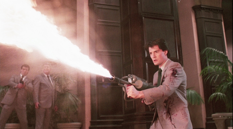 O filme abre com um golpe de mestre: um homem comum rouba um banco com brutalidade eficiente, escapa em uma Ferrari roubada ouvindo heavy metal ensurdecedor, atropela pedestres, entra em tiroteio que termina com ele crivado de balas mas sorrindo enquanto agoniza. A perseguição é coreografada com precisão admirável, Sholder demonstrando domínio de geografia espacial e timing. Os carros colidem com peso real, as explosões parecem perigosas, há senso genuíno de caos urbano. É o trabalho de um diretor confiante.