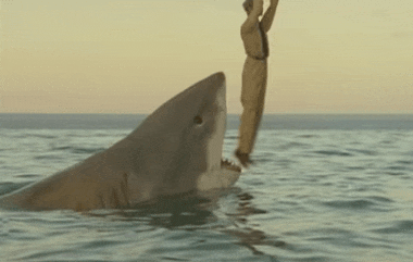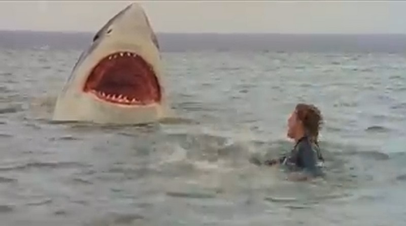 O animal conseguirá facilmente atravessar a rede e se prenderá numa boia, resultando numa cena curiosa em que ela derruba vários dos esportistas no mar até devorar o assistente do prefeito. Esta cena é uma das referências do filme e sempre lembradas em listas dos piores filmes de todos os tempos: um manequim é jogado pra cima, imóvel, pelo tubarão até cair e ser devorado. A tragédia incentiva a ida de Peter e Ron para uma caçada submersa, com explosivos, mas é o tubarão que vence a disputa, soterrando-os numa caverna, em mais uma sequência hilária. Ao mesmo tempo, Jenny se une a outros jovens locais, incluindo o filho do prefeito, Billy (Gian Marco Lari), para caçar o tubarão, apenas para que a garota tenha parte da perna arrancada.