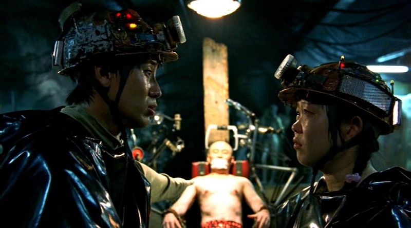 Porém, onde o filme indubitavelmente triunfa é fotografia de Hong Kyung-pyo, que anos depois se tornaria colaborador de Bong Joon-ho em Expresso Do Amanhã (2013) e Parasita (2019). Aqui, ainda relativamente no início de carreira, Hong entrega um trabalho que define esteticamente o filme. A paleta de cores é alucinantemente vibrante, saturada ao ponto de hiper-realidade: azuis elétricos, verdes ácidos, vermelhos sangrentos, amarelos fluorescentes coexistindo em frames que parecem páginas de quadrinhos de ficção científica de décadas anteriores. É estética distintamente anos 2000, período onde MTV-aesthetics influenciavam até cinema autoral, onde grading digital ainda era novidade sendo explorada até limites de bom gosto. Hong referencia conscientemente sci-fi clássico (como as cores primárias de 2001 – Uma Odisseia no Espaço (1968), além de iluminação expressionista de filme noir e texturas granulentas de paranoia setentista) enquanto mantém sensibilidade contemporânea que previne o filme de parecer pastiche nostálgico.