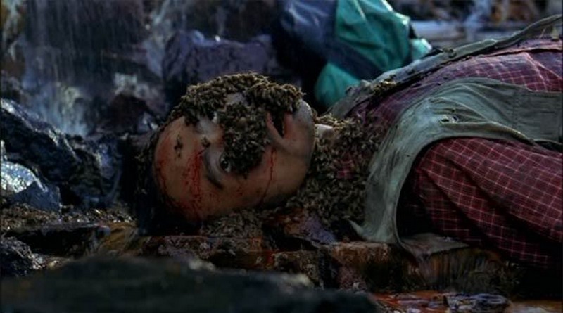 Os efeitos visuais expõem limitações orçamentárias brutalmente. Efeitos práticos e maquiagem são genuinamente excelentes: há gore que funciona, ferimentos que evoluem realisticamente, violência física que é crível sem ser exploitativa gratuitamente. Mas efeitos digitais, especialmente no terceiro ato, beiram amadorismo. As abelhas CGI (sim, abelhas aparecem aqui também, embora menos centralmente que em Bugonia) parecem obviamente falsas, flutuando em frente a atores sem peso ou presença física. Pior ainda são efeitos após revelação sobre aliens serem reais: naves espaciais, transformações corporais, destruição planetária filmada em CGI que parece datado até para padrões de 2003. Não ajuda que Jang opte por mostrar esses elementos em plena luz ao invés de escondê-los em sombras ou cortes rápidos que disfarçariam limitações técnicas.